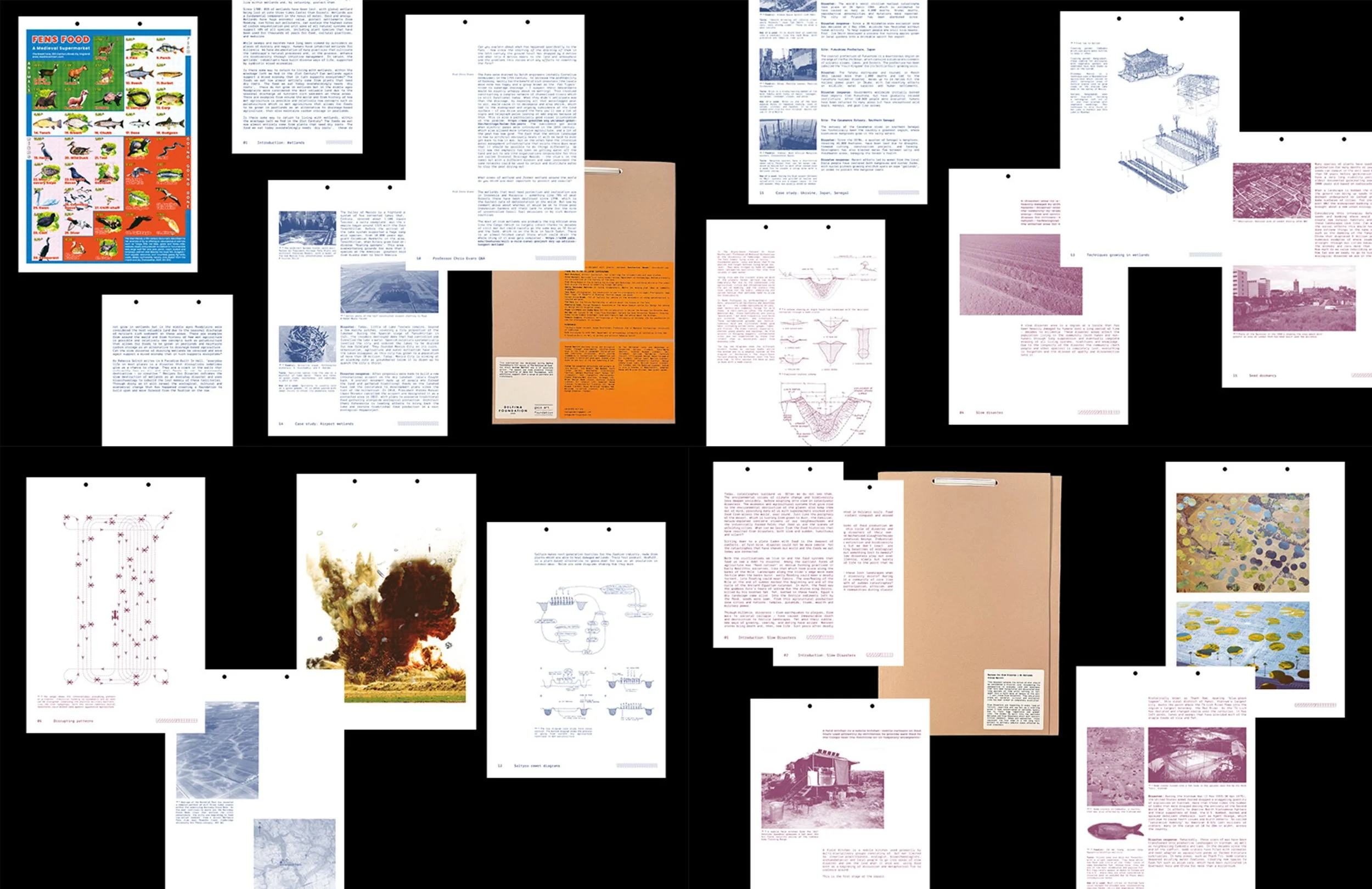 Recipes for Slow Disaster | 01 Wetlands is a print publication developed during his time on the residency. Comprised of initial research, provocations, case studies, interviews, and original diagrams, images and illustrations, the publication extends the notion of what should be considered a ‘disaster zone’ to that of the ‘slow disaster’. From this outset, it looks how existing ‘disaster response’ approaches might be adapted and utilised in various contexts, with a focus on the global destruction of wetlands.